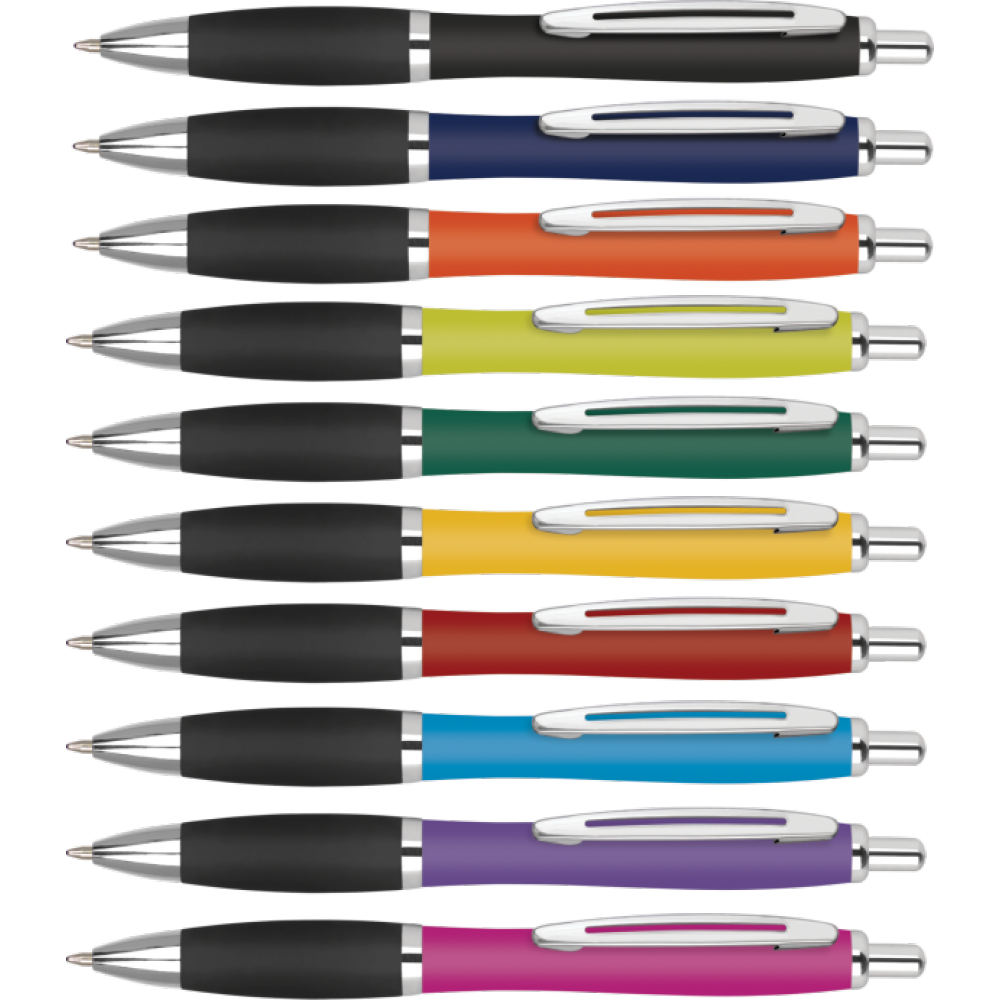 Impressive metal ballpen with a popular curved shape and large branding area. The barrel features a soft-touch rubberised coating for a premium look and feel, available in a wide range of bold colours. Our Chromark™ engraving gives a stunning mirror finish. Also suitable for spot colour printing.